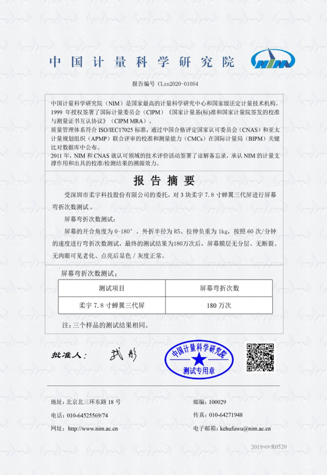 折叠屏手机为何价格居高不下,其最大的技术难度和最大卖点都在屏幕上。FlexPai 2的屏幕采用了柔宇在今年3月发布的 “第三代蝉翼全柔性屏”,展开后的屏幕尺寸达到7.8英寸,其突出之处在于:最小弯折半径只有1mm,而其他同类产品都只能做到1.4mm;在平整度方面则做到了接近镜面的观感;在可靠性上,通过中国计量院180万次弯折权威认证,将折叠屏的耐用性提升了一个数量级。