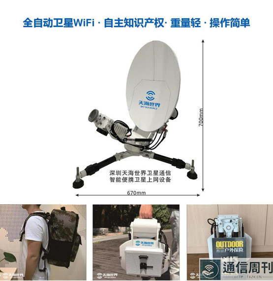 经过深入的市场调研,天海世界“全自动便携卫星上网设备”隆重面世,该设备由天海世界卫星通信自主研发,现已获得多项专利。据调查,国内目前还没有比它更轻便、操作更简单的卫星上网设备。