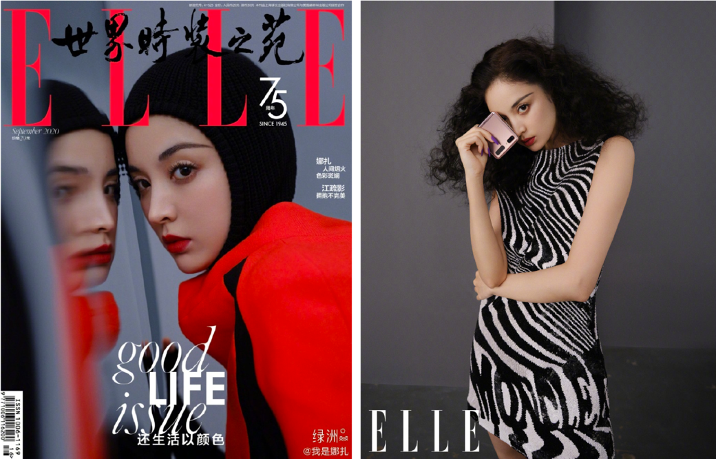 娜扎在为《ELLE世界时装之苑》拍摄75周年封面和内页杂志时,还不忘拿Galaxy Z Flip 5G出镜搭配爆炸头发型复古朋克范儿,一副时尚摩登女郎的模样Galaxy Z Flip 5G在娜扎手中也显得更加有范儿,宛如一个吸晴的潮流配饰。