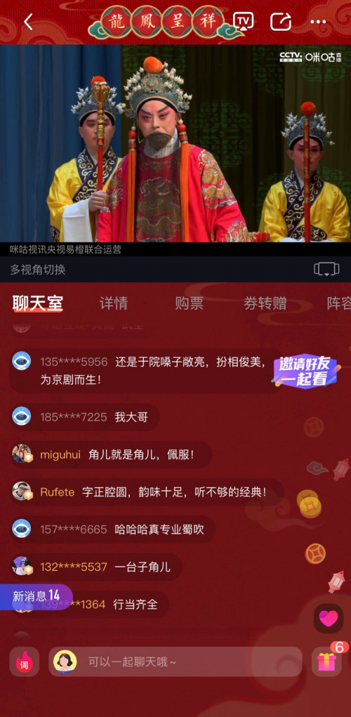好戏继续上演,精彩不落幕。即日起至正月十五(2月26日),《龙凤呈祥》将继续在“云端”与观众相约,为全球华人创造难以忘却的美好记忆。作为新媒体国家队,咪咕将持续探索“文化+科技”创新,助推传统文化产业数字化转型,让中华优秀传统文化焕发全新生命力,筑牢文化自信基石。