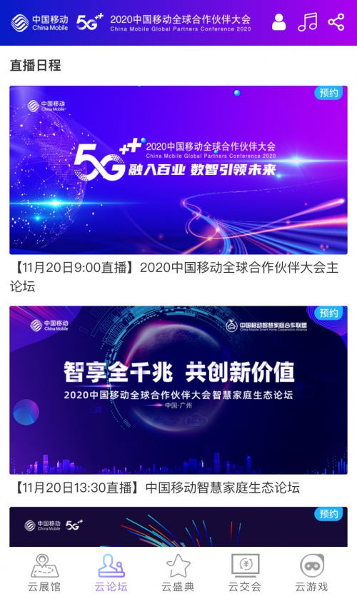 大会的最新资讯,当然也不能错过啦。此次大会期间将有数十场高端峰会举行,不仅众多行业大咖将亮相,还会重磅发布5G+最新产品和合作计划。不在现场没关系,云论坛板块将为大会的论坛、现场活动提供在线直播及回看,一键预约就行~