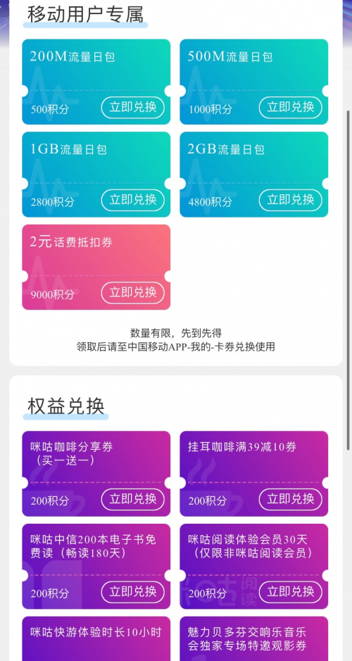 除了咪咕提供的各种会员、咖啡、电子书券等,还有流量券和话费券。小朋友才做选择,正在攒积分的小编只想说:“我全都要!”